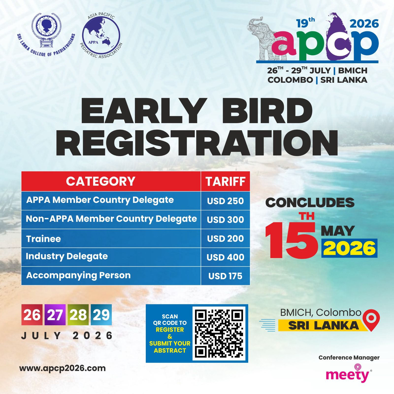 As the incumbent President of APPA, I extend my warmest greetings and heartfelt anticipation for the 19th Asia Pacific Pediatric Congress, set to grace Colombo, Sri Lanka, in 2026.